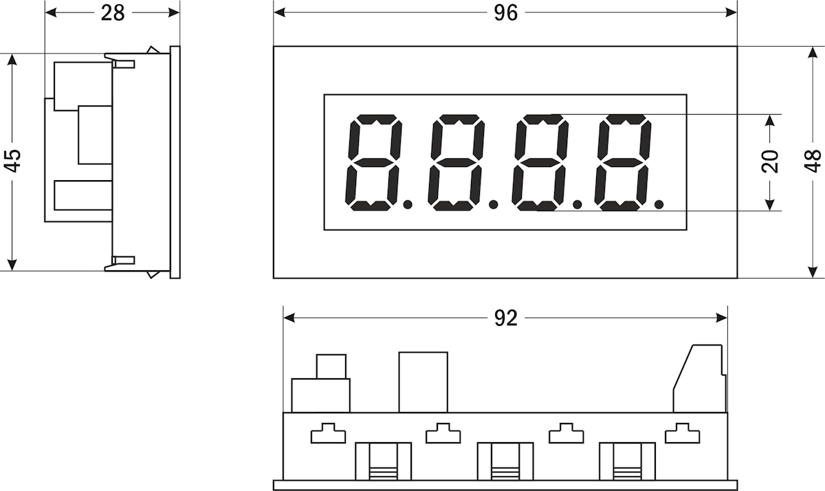 - Возможность отображения различных символов ASCII, таких как целые числа, отрицательные знаки, десятичные точки, буквы латинского алфавита и т. д.