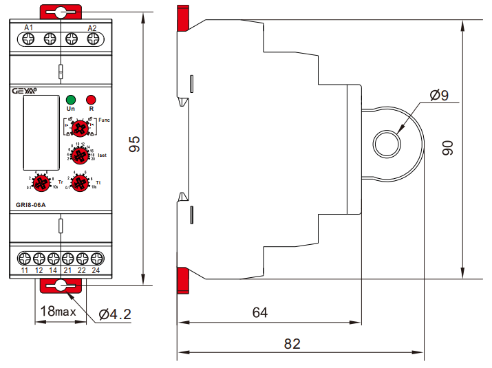 Реле контроля тока GRI8-06A предназначено для мониторинга нагрева рельсовых переводов, нагревательных кабелей, потребления однофазных двигателей и индикации протекания тока