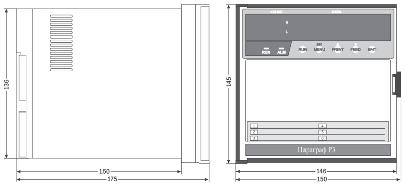 «ПАРАГРАФ P3» – 6-канальный матричный самописец с универсальным входом для измерения, регистрации и регулирования температуры и других физических величин, записи измеренных величин на бумажную диаграммную лентуОсобенности: